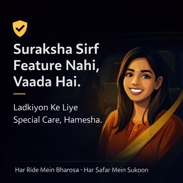 At U-DRIVE, safety isn't just a feature it's our foundation. Whether you're a daughter, sister or friend, we understand the importance of feeling secure while traveling. That's why every ride comes with verified drivers, GPS tracking, and a promise to be at your doorstep in just 5 minutes. Our commitment to women's safety is more than a slogan it's a movement. U-DRIVE empowers passengers with confidence, convenience and care making every journey not just fast and affordable, but truly reassuring.