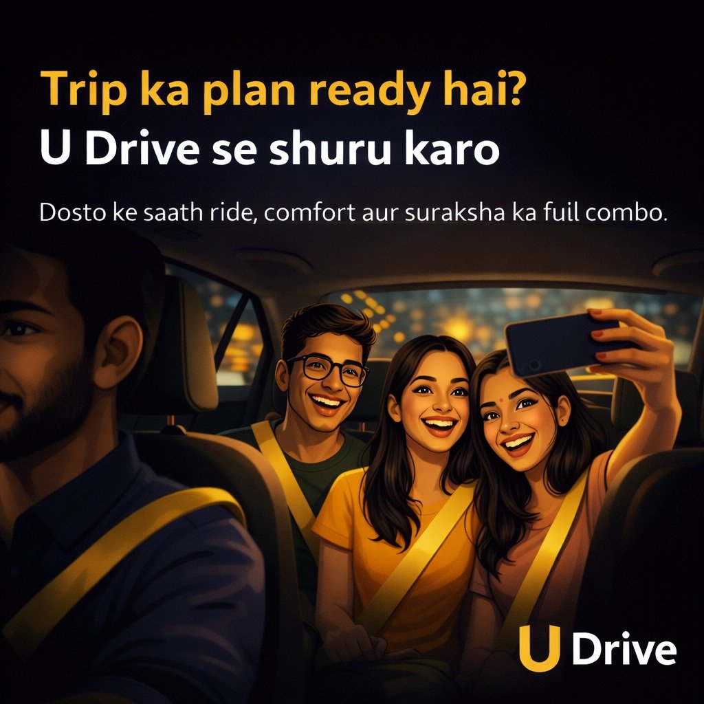 U-DRIVE is more than just a ride it's a gateway to spontaneous plans, road trips, and unforgettable memories. Whether it's a last-minute getaway or a weekend adventure, U-DRIVE gives you the freedom to book instantly and enjoy your own Journey. With easy booking, instant unlocking, we make mobility fun, flexible, and truly yours. Because when plans change, U-DRIVE doesn't cancel it accelerates.